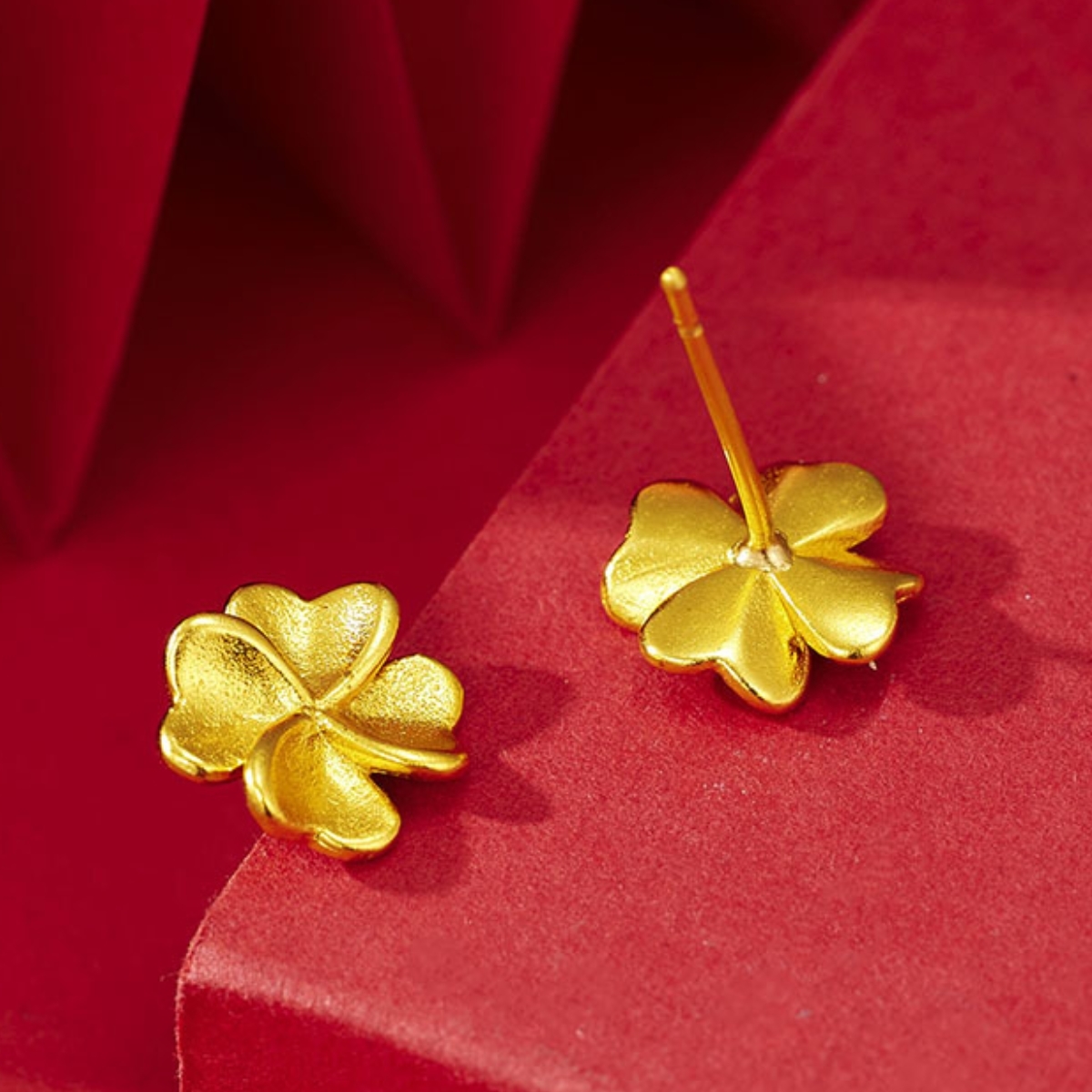 Element Gold-Finish Fashion Jewelry Four-Leaf Clover Studs with Ear Plugs