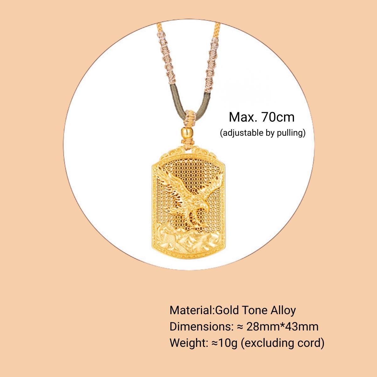 Dimensions & Weight: The pendant measures approximately 28mm x 43mm (1.1″ x 1.7″) and has a substantial weight of about 10 grams (excluding the chain), giving it a premium feel.